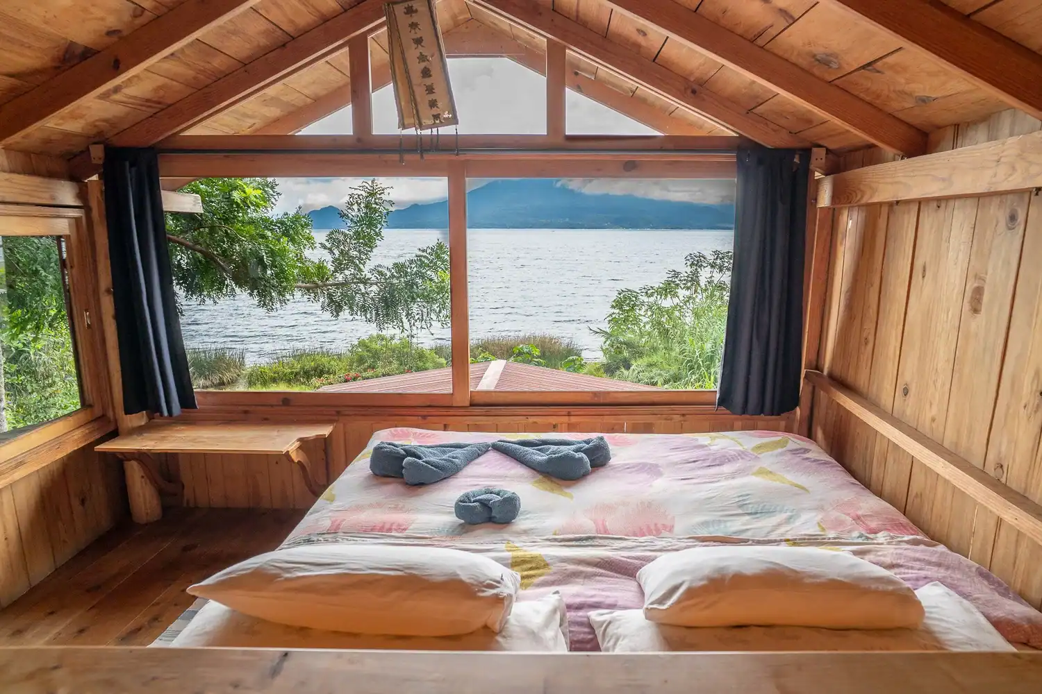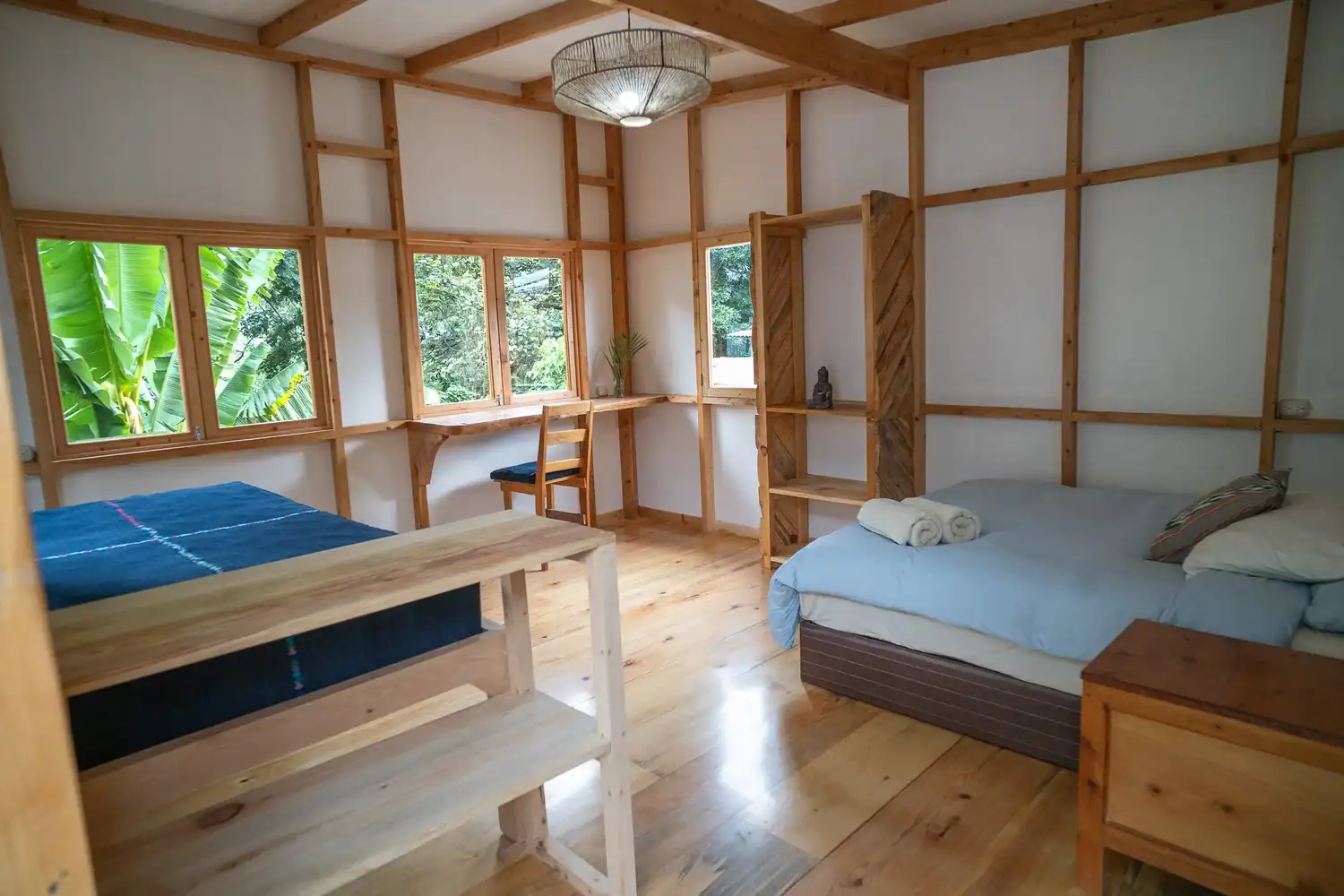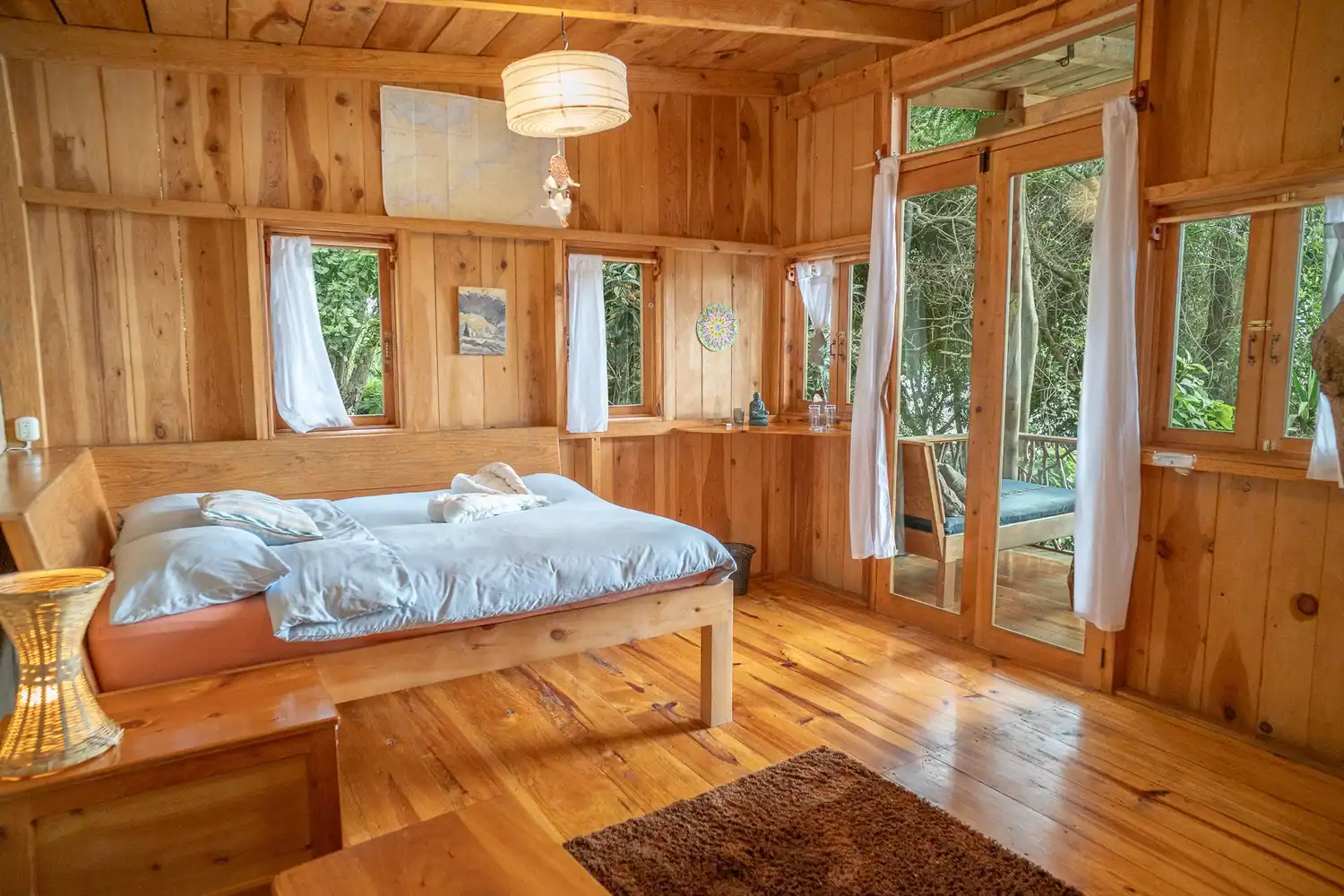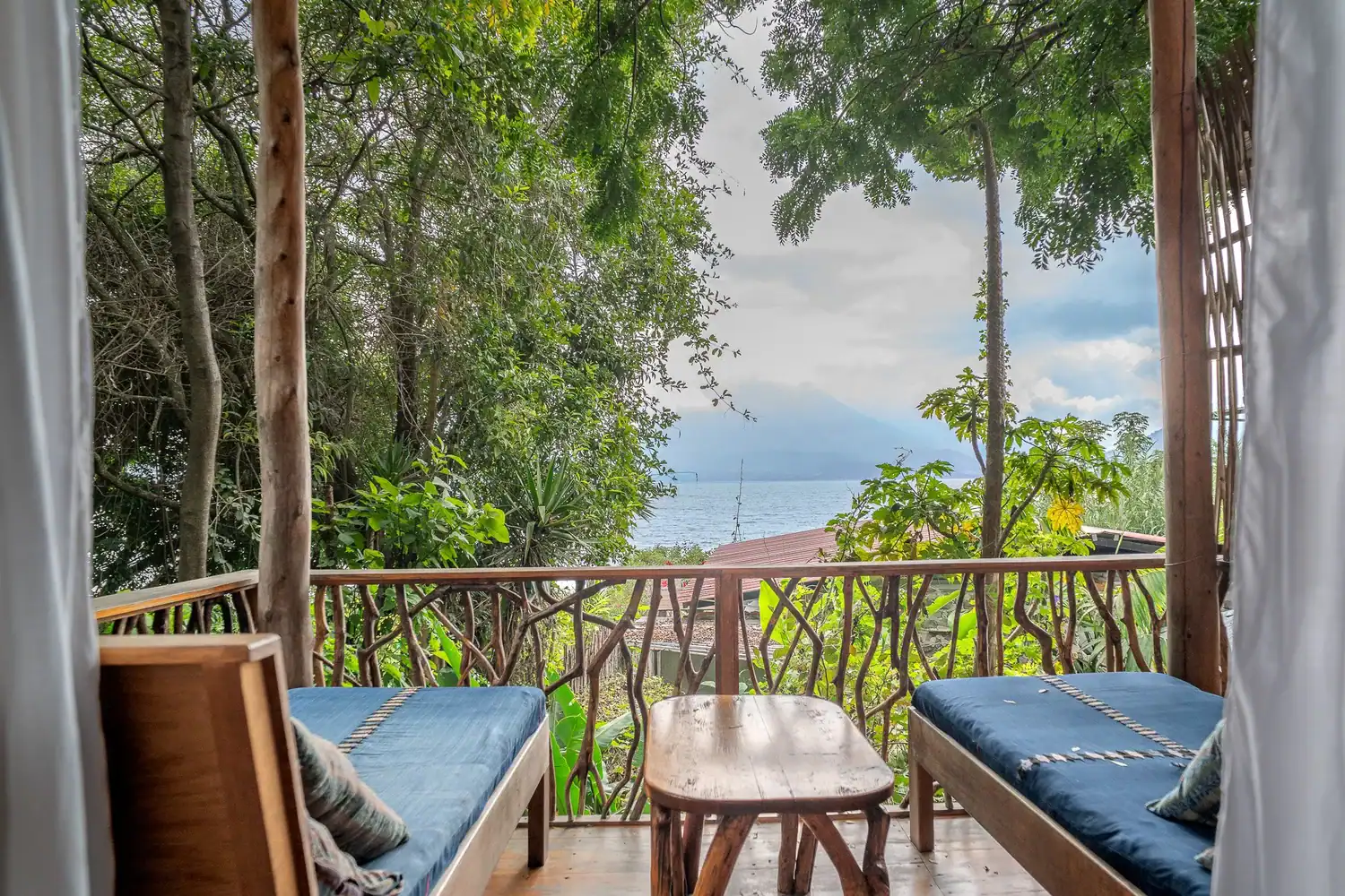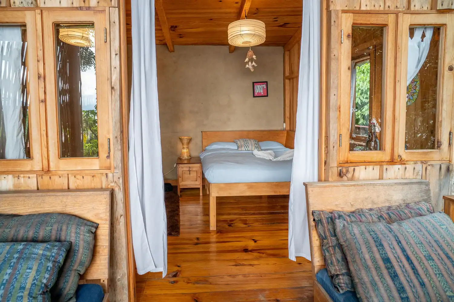 Escape to Venga’s beautiful lakefront treehouse cabin – a charming one-floor loft with a private balcony overlooking Lake Atitlán. Perfect for couples, this thoughtfully designed cabin offers serene mornings surrounded by nature’s tranquility.