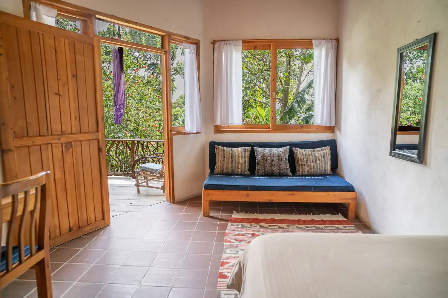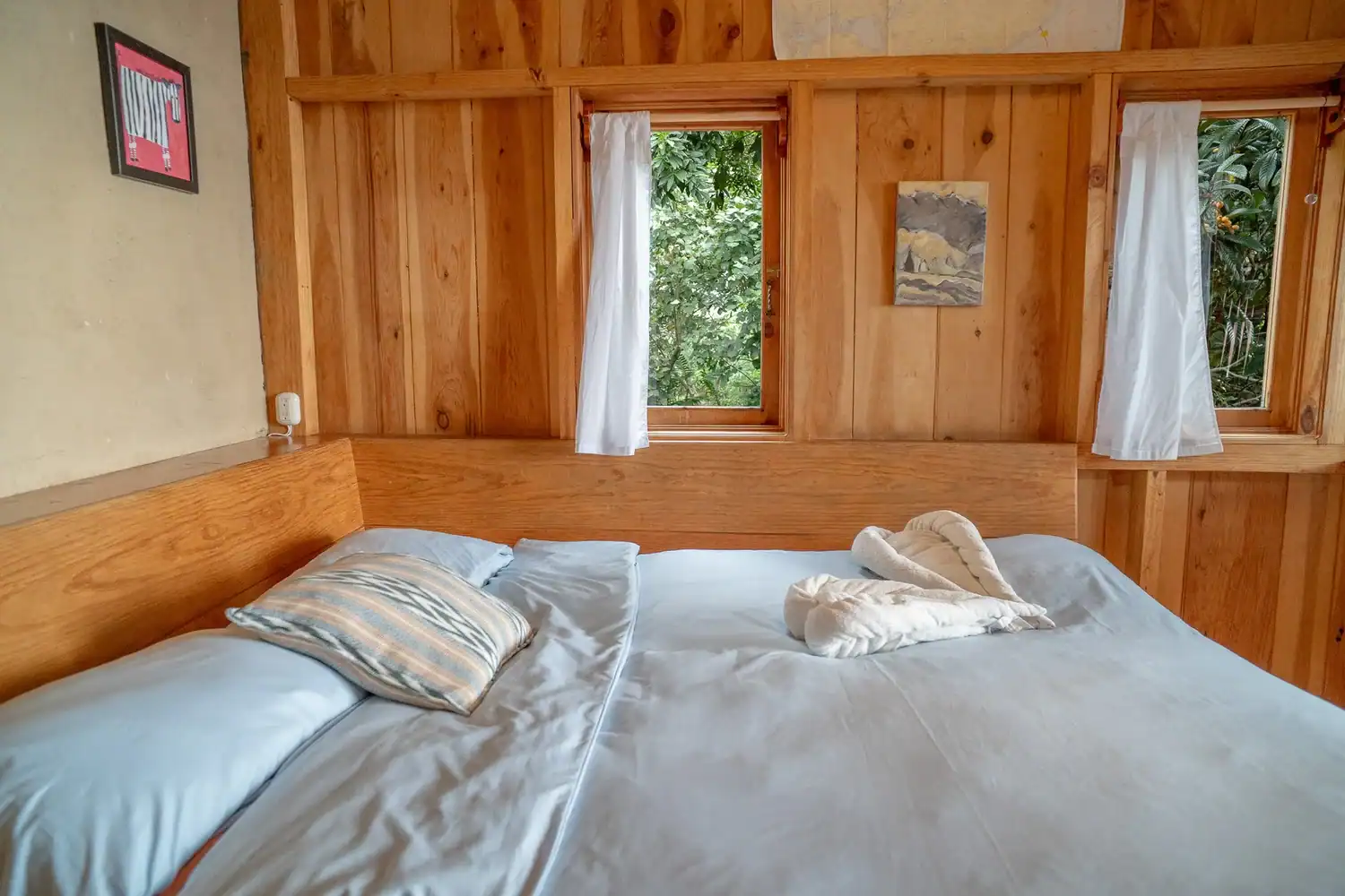 Venga’s treehouse apartment is the largest and most comfortable lodging accommodation we have available – offering unbeatable views of Lake Atitlán direct from your queen bed! This two-story apartment is perfect for couples looking for a romantic experience and who may wish to make use of the additional living room & kitchen space. The apartment is also great for a small group of friends!